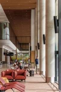 Western Sydney is one of Australia’s most culturally diverse regions, home to a rich tapestry of communities and histories. The airport’s design honors this diversity through a close collaboration with the Dharug Custodians and First Nations consultant Murrawin, who helped embed Indigenous narratives and cultural values into the architecture. This respectful integration creates a space that is egalitarian in spirit and expressive of the many identities that define the region.