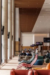 The terminal’s layout emphasizes simplicity and ease of movement, setting a new standard for passenger experience in Australia. Strong visual cues and an intuitive flow guide travelers naturally through the terminal, reducing stress and confusion. This approach balances the complex operational requirements of a major international airport with human-scaled design principles, creating a space that feels welcoming and accessible.