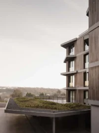 Inside, the design continues the sustainable ethos. Interior finishes, including kitchens, living areas, and window frames, are carefully detailed to enhance daylight, promote natural ventilation, and support long-term durability. Open-plan layouts allow flexible use of space, while balconies and terraces extend living areas outward, creating a connection to the river and natural surroundings.