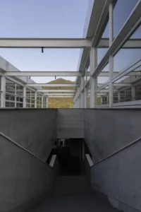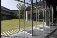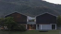 The hotel occupies a green, park-like site, where the public areas are organized to provide maximum adaptability. Two large greenhouses form the central component of the design. These steel-frame structures, clad with PVC panels, act as simplified yet durable envelopes that accommodate a wide range of interior layouts. The open design ensures that the interior can transition smoothly between functions, whether as an outdoor hotel, urban resort, event venue, off-road base, cycling hub, or mountain retreat. Through careful integration of MEP systems, these spaces remain fully operational while retaining complete spatial flexibility.