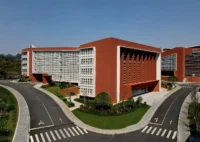 The five-story building is oriented along a south-north axis, following the natural slope of the site. The design is organized into two primary volumes, with the southern student library serving as a visual threshold and welcoming point from the open campus. The northern volume gradually follows the terrain, enclosing a series of courtyards and housing administrative offices and studios. This progression from openness to enclosure along the axis establishes a clear spatial hierarchy and constitutes the organizational spine of the campus, linking outdoor and indoor learning environments seamlessly.