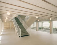 Natural light and passive cooling dominate the environmental strategy, reducing energy consumption while enhancing comfort. Careful material selection—such as limestone, lime plaster, and durable low-maintenance finishes—emphasizes longevity and ecological responsibility. This focus on simplicity and efficiency aligns with the broader educational mission of the campus: cultivating spaces that promote well-being, sustainability, and intellectual life without excessive resource consumption.